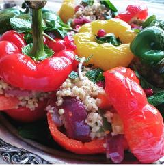 Palestinian Mahshi dishes are stuffed vegetables filled with a flavoursome vegetabel & bulgur (or rice) mixture – traditionally served on Sundays or holidays, as they can be prepared the day before. We will show you how you can make stuffed aubergine, peppers, tomatoes and courgettes before you make your own Mahshi. We are going to serve the Mahshi with M’jaddara (a lentil and rice dish topped with fried onion) and a fresh pomegranate salad.